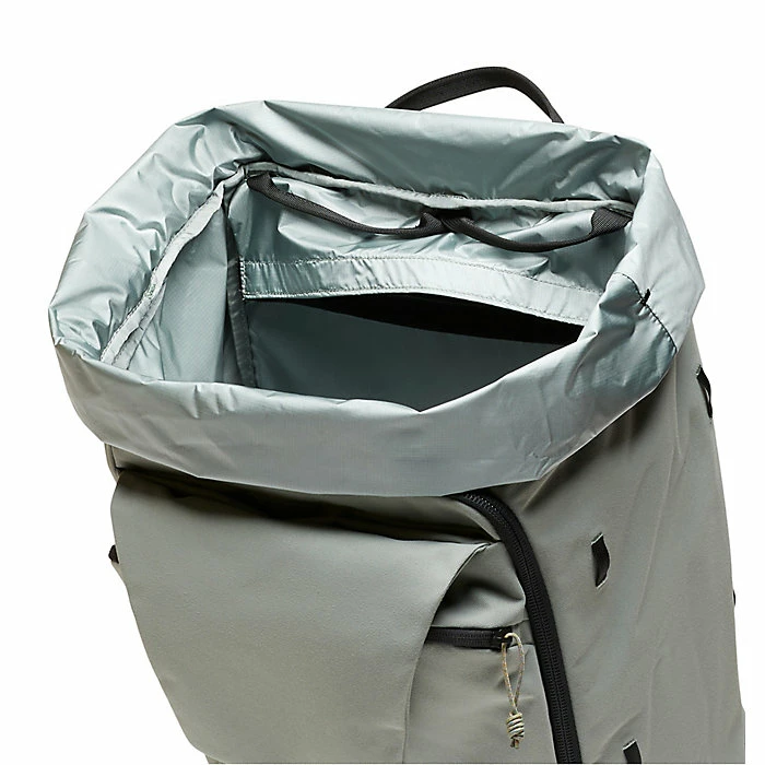 - Tuck-away storm flap secures a rope, helmet, and other