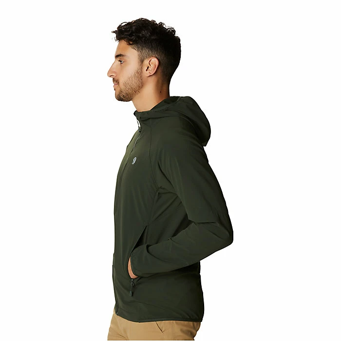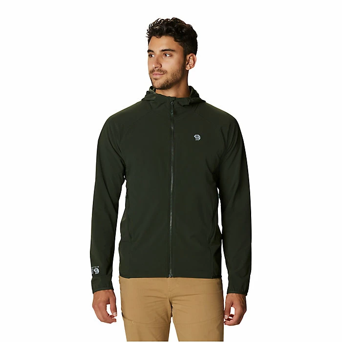 The Mountain Hardwear Men’s Chockstone Hoody is a softshell jacket for mixed alpine hikes and climbs. The nylon and elastane blend softshell fabric is movement-friendly and features a durable water repellent finish to shed light moisture. Built to breathe well while moving fast in the mountains, it provides light protection against mild weather. For those days with a little bit of everything; sun, sprinkles, wind and more.