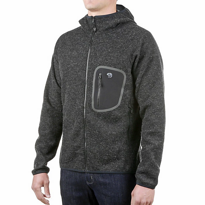The Mountain Hardwear Men’s Hatcher Full Zip Hoody is a blended wool fleece for durability, warmth, and comfort. The interior features gridded fleece which adds warmth, wicks moisture away from the skin, and dries super fast. Hike, enjoy the campfire, even pop into town when necessary. Zippered pockets hold onto a few precious small items without dropping them and the hood is ready for cooler weather.