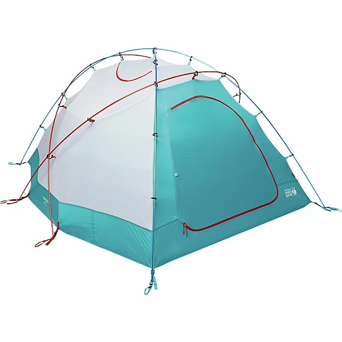 The Mountain Hardwear Trango 4 Person Tent is a mountaineering tent for exploring the alpine. Sleeps up to four and has a front and rear door, with a vestibule to complete each side for gear storage. Capable of year-round use, with steadfast sturdiness to hold up in the worst winter weather. Color coding makes it easier to pitch while a window allows you to check conditions without exposing yourself to the cold or weather.