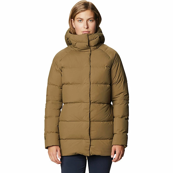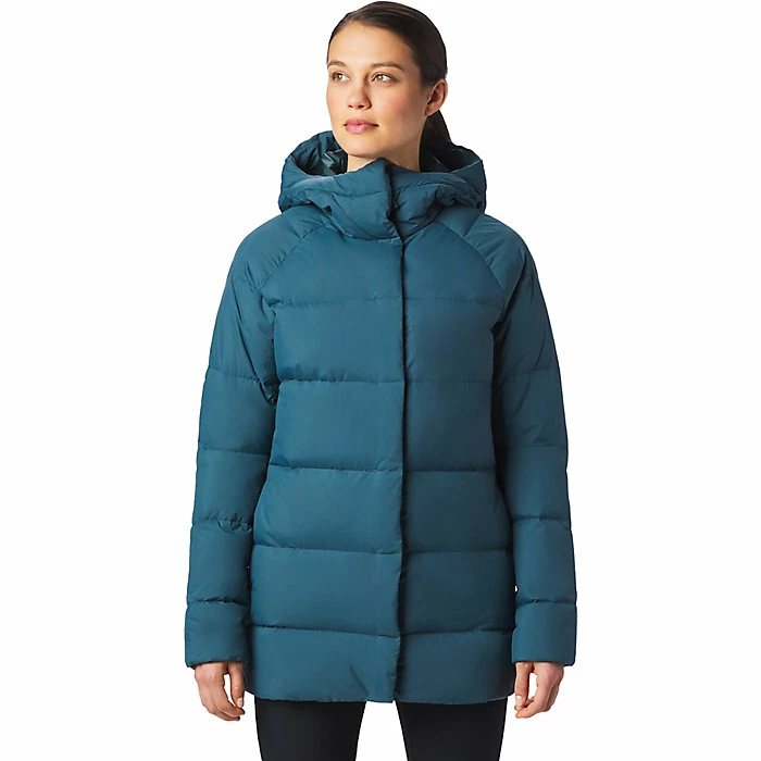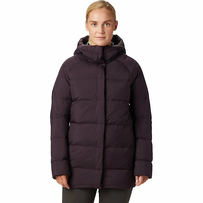 The Mountain Hardwear Women’s Glacial Storm Parka is a down parka with length for full winter coverage. Designed for dry winter weather, you can head to work in warmth or do more exciting things, like take a hike to the bottom of a climb and getting into a harness. The 600 fill power down is warm and lightweight, while the brushed nylon shell is durable against abrasion.