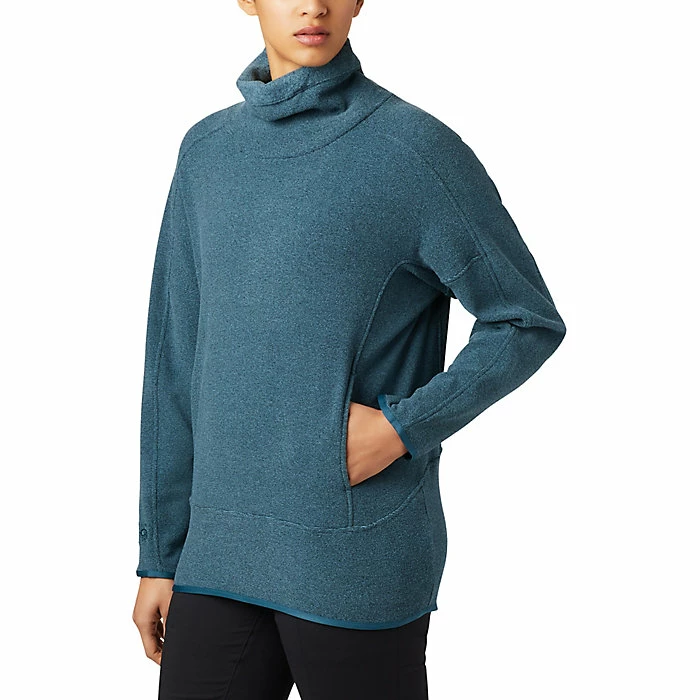 The Mountain Hardwear Women’s Ordessa Pullover is a cozy pullover for slipping into the chill fall air. Wave goodbye to summertime camping and give a snuggly hug to football games and raking leaves. The tall, roomy neck warms with plenty of coverage and the cropped length won’t take over your leggings. A couple of hand pockets offer a spot for heating up the fingertips.