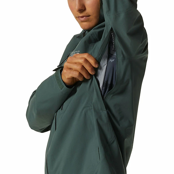 The Mountain Hardwear Women’s Stretch Ozonic Jacket is a rain shell for unrestricted wandering along the trail. Stretch is the name of the game with this waterproof, breathable jacket. The 2.5 layer fabric will keep the wet weather off, whether it’s a slight drizzle when headed into town or unexpected downpour while hiking to the next camp. Underarm zips open up to dump excess heat on warmer days, while zippered pockets prevent small possessions from dropping to the forest floor.