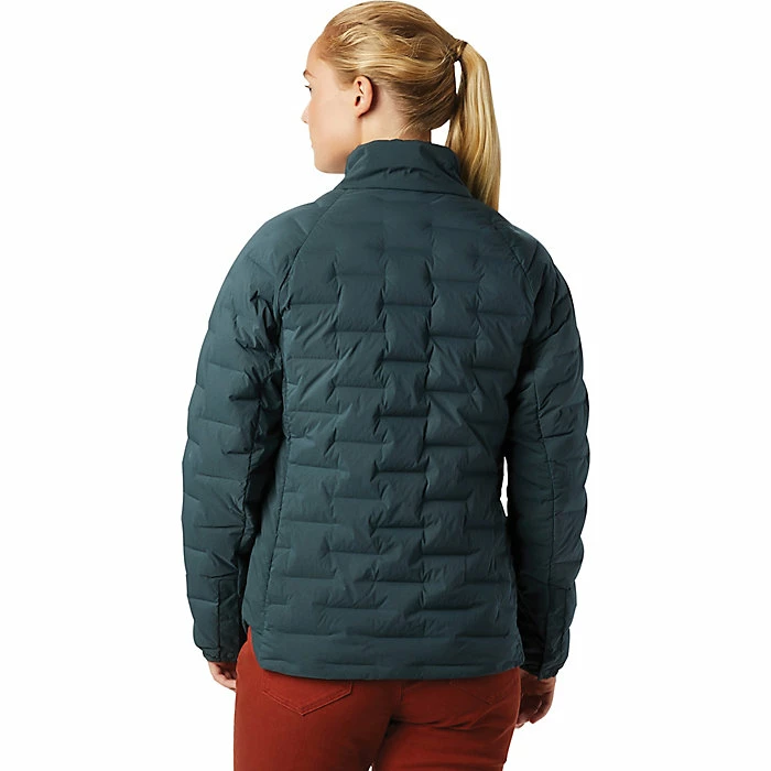 The Mountain Hardwear Women’s Super/DS Shirt Jacket is an insulated jacket for more casual affairs. Mornings at camp to coffee shop days, brisk day hikes and heading off to work. The single piece stretch fabric helps eliminate cold spots as well as facilitates movement. Stretch here, reach there, get on with the day with the warmth of 700 fill power down.